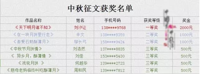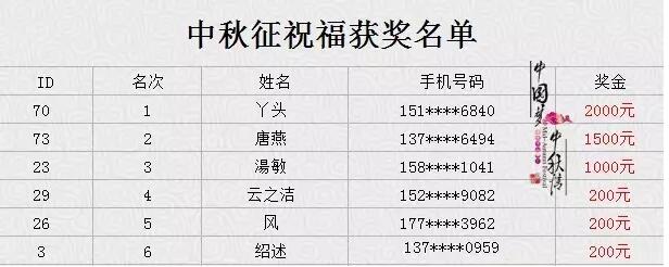 中秋有獎?wù)魑?、征祝?;顒?dòng)領(lǐng)獎金名單公布啦??!